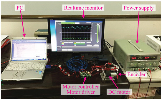 This section validates the effectiveness of AG-PSMF in position control. For comparison, the performances of position controls without filter and with PSMF were also evaluated. Figure 11 shows the experimental setup, which consisted of a DC motor with an optical encoder, a 16-bit motor controller and a motor driver.