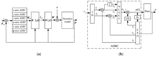 Control system diagram: (a) control system structure of the maglev planar motor; and (b) configuration of a second-order ADRC.