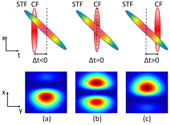 - Coughlan, M.A.; Plewicki, M.; Levis, R.J. Parametric spatio-temporal control of focusing laser pulses. Opt. Express 2009, 17, 15808–15820. [Google Scholar] [CrossRef] [PubMed]