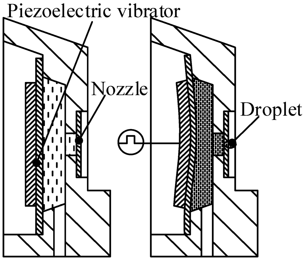 The drop-on-demand (DOD) injection technology, which was first proposed in ink-jet printing technology, has the advantages of higher injection precision, better control flexibility and greater efficiency than continuous injection [1]. As the primary structure forms to realize DOD injection, the piezoelectric micro-jet brings about high speed development and widespread applications in 2-D or 3-D printing [2], bio-medical field [3,4,5], material science [6], MEMS [7], electric fuel injection technology [8,9] etc.