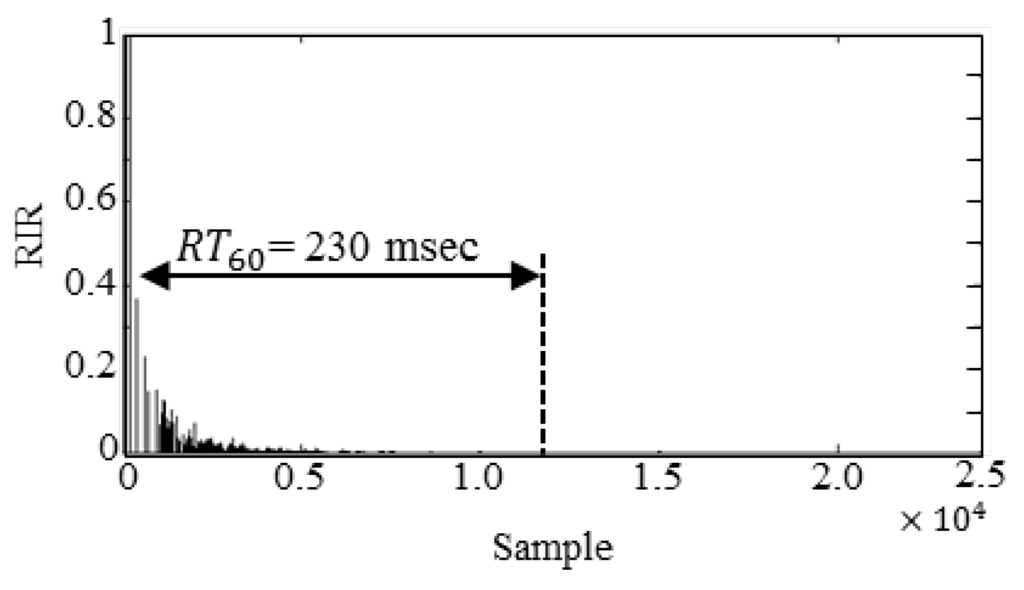 - Allen, J.B.; Berkley, D.A. Image method for efficiently simulating small-room acoustics. J. Acoust. Soc. Am. 1979, 65, 943–951. [Google Scholar] [CrossRef]