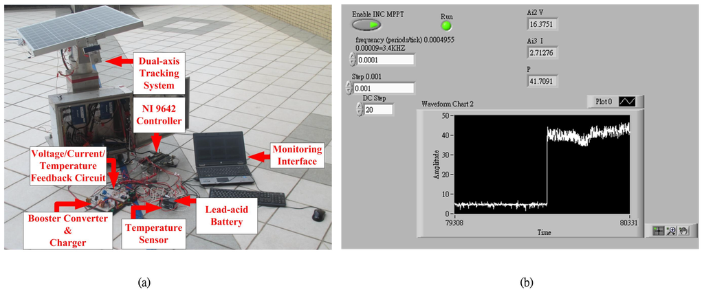 Solar tracking power supply system. (a) Onsite hardware architecture; (b) MPPT control interface.