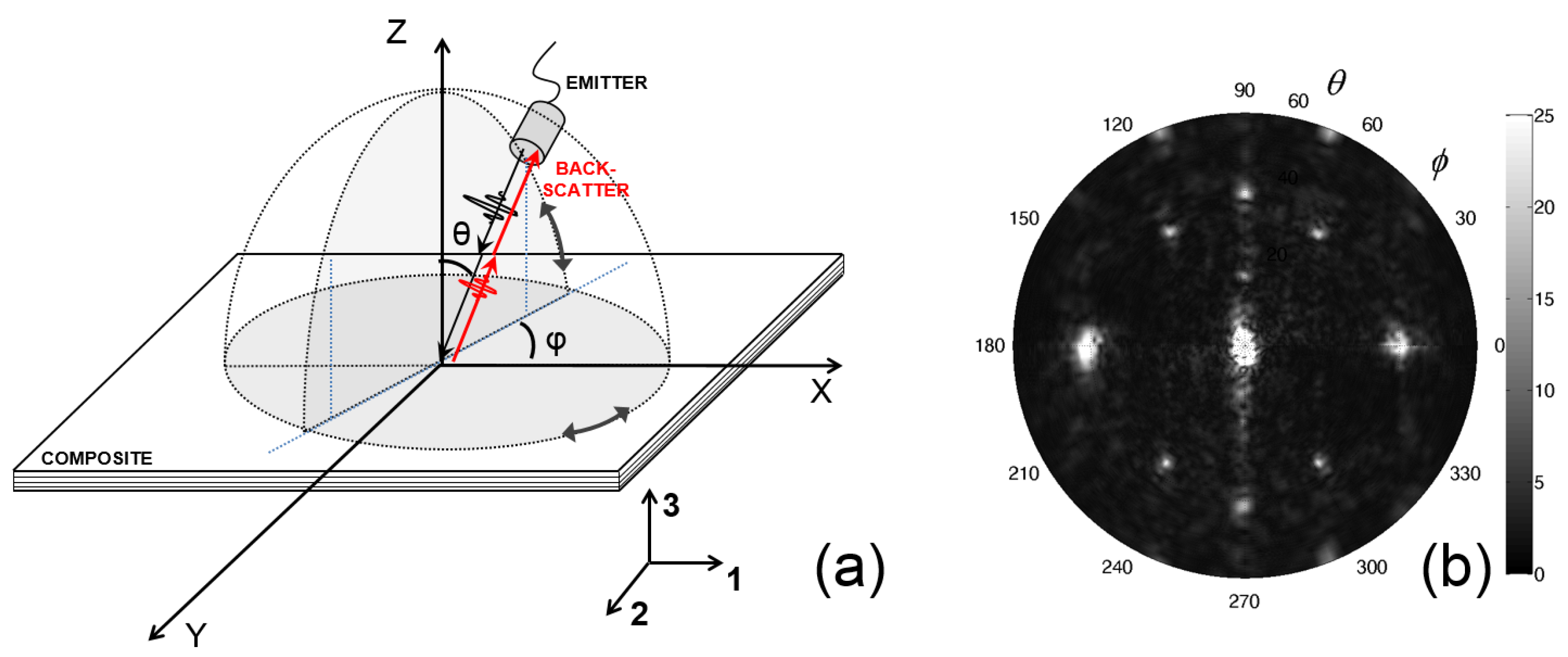 - Kersemans, M.; van Paepegem, W.; Lemmens, B.; van den Abeele, K.; Pyl, L.; Zastavnik, F.; Sol, H.; Degrieck, J. The pulsed ultrasonic backscatter polar scan and its applications for NDT and material characterization. Exp. Mech. 2014, 54, 1059–1071. [Google Scholar] [CrossRef]