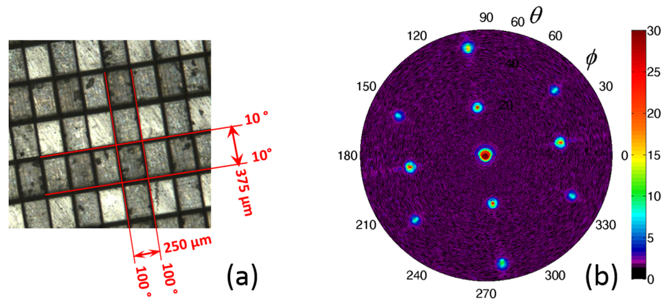 - Herbison, S.W. Ultrasonic diffraction effects on periodic surfaces. Ph.D. Thesis, Georgia Institute of Technology, Atlanta, GA, USA, August 2011. [Google Scholar]