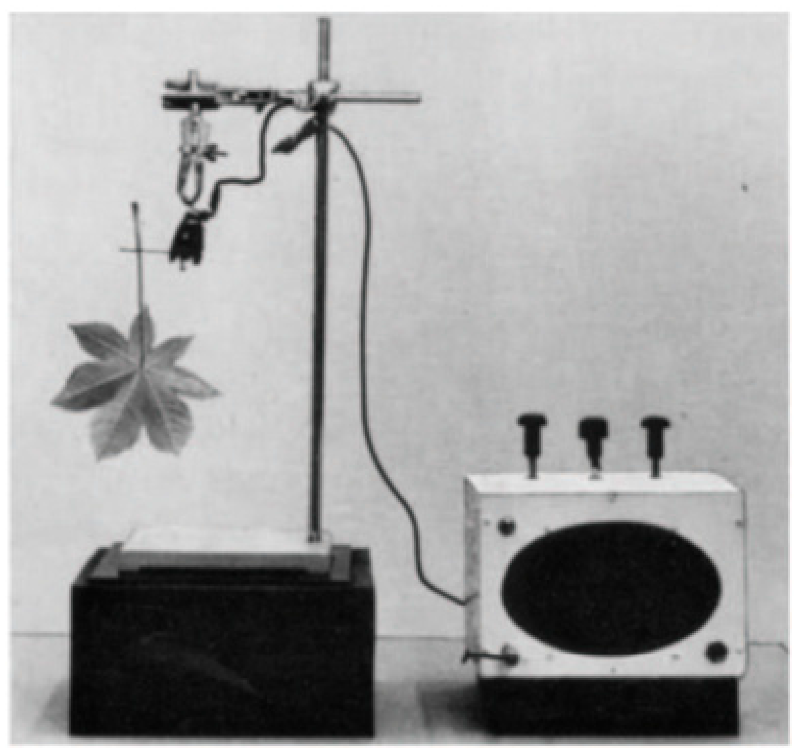 Picture of the vibration detector used by Milburn and Johnson [42] to detect drying-induced sounds in leaf petioles.