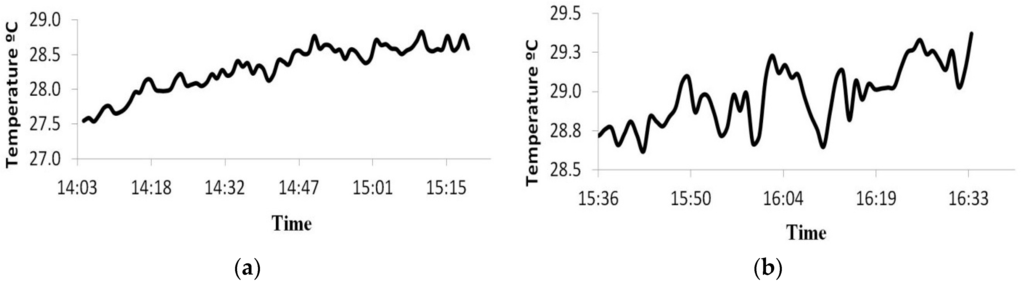 Evolution of environmental temperature: data acquisition (a) and validation results (b).