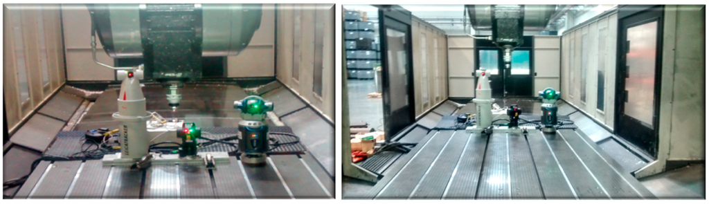 Although the influence of geometric errors on verification points is the same for all LTs, the MT errors that each LT provides are different due to the different sources of error such as SMR errors, LT measurement characteristics, non-geometrical error, thermal variations, and so on. By measuring the same mesh of points simultaneously with all LTs, the influence of extra error in the measurement data is only the result of the LT characteristics and SMR errors.