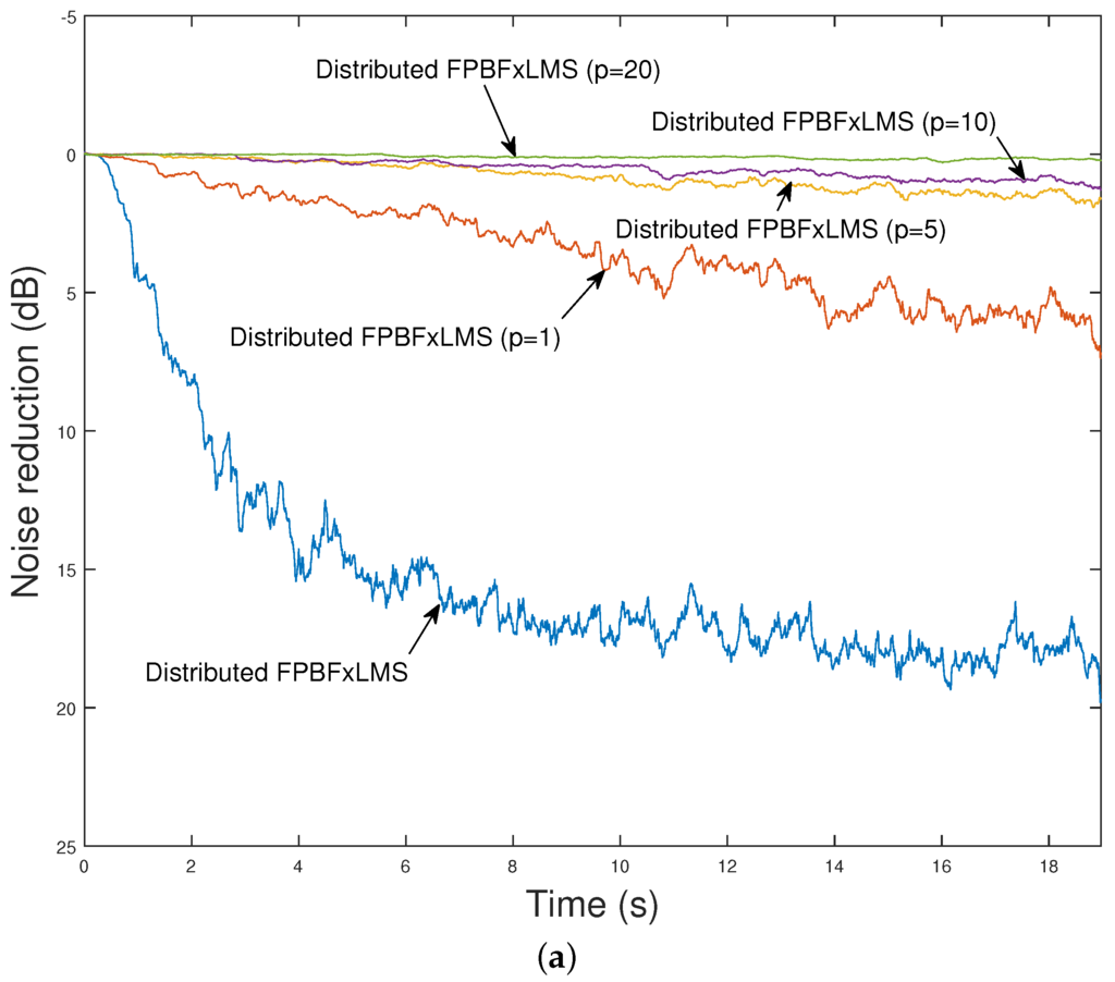 - Ferrer, M.; de Diego, M.; Piñero, G.; Gonzalez, A. Active noise control over adaptive distributed networks. Signal Process. 2015, 107, 82–95. [Google Scholar] [CrossRef]