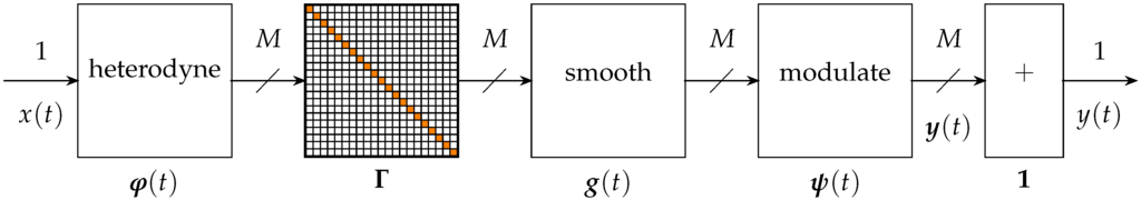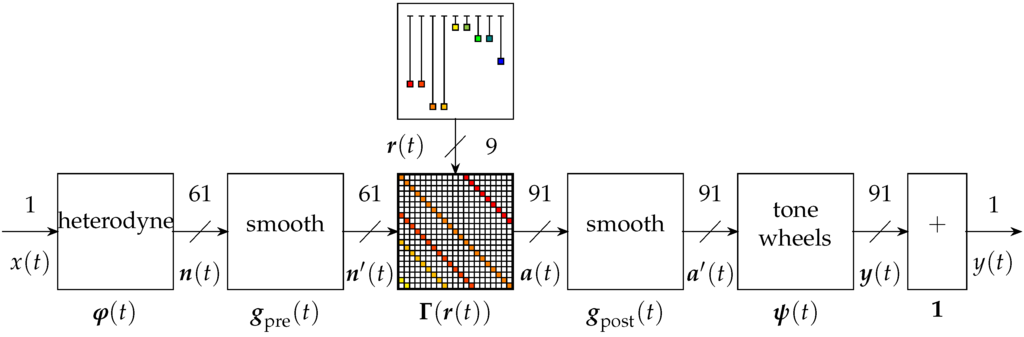 In the Hammondizer, the input signal is heterodyned to baseband by a column of modulating sinusoids :