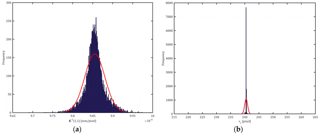 (a) K−1(1, 1) histogram; (b) vr histogram.