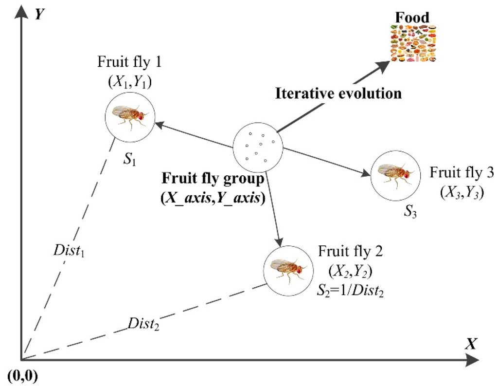 - Shan, D.; Cao, G.H.; Dong, H.J. LGMS-FOA: An Improved Fruit Fly Optimization Algorithm for Solving Optimization Problems. Math. Probl. Eng. 2013. [Google Scholar] [CrossRef]