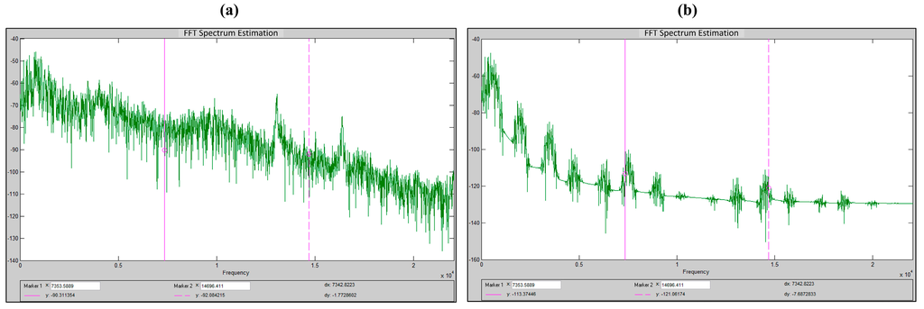 - Denoise the noisy signal by TFB. An improved threshold function with continuous first and second order derivative was introduced in [10], and is presented as follows:where λ is determined according to Equation (3) and k = 3.