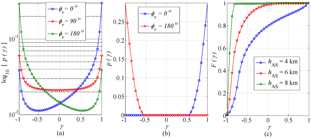 The proposed model is applicable for all of the altitudes of AS as long as > and > . The proposed analysis can be helpful in designing error control codes and diversity schemes required in future digital communication systems. LCR and AFD can also be used for the guidance of the selection of the packet length to minimize the packet error rate. The proposed analysis can be extended to devise AS’s velocity estimation algorithms by exploiting the relationship of LCR in (42), where it is evident that the maximum Doppler frequency is directly related to LCR, the spatial spread and other physical channel parameters. The proposed analysis on the coherence distance can be useful in studying the stability of the communication channels. The proposed analysis on the quantification of the spatial spread can be helpful in calculating the precise antenna correlations for designing efficient multi-antenna beamforming systems for future aeronautical communication networks.