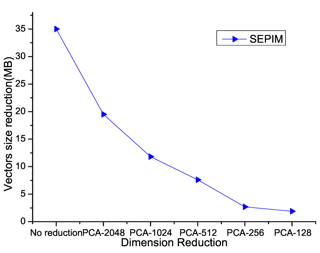Vectors’ size reduction over 10,000 images with various dimension reductions.