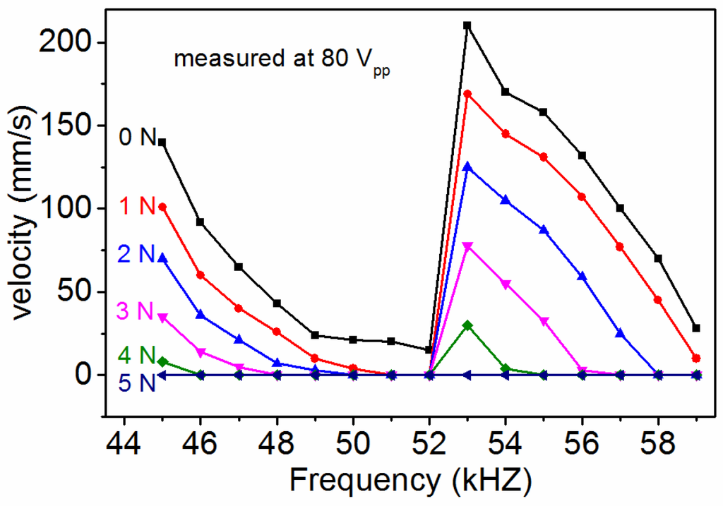 - Li, X.T.; Chen, J.G.; Chen, Z.J.; Dong, S.X. A high-temperature double-mode piezoelectric ultrasonic linear motor. Appl. Phys. Lett. 2012, 101, 072902. [Google Scholar] [CrossRef]