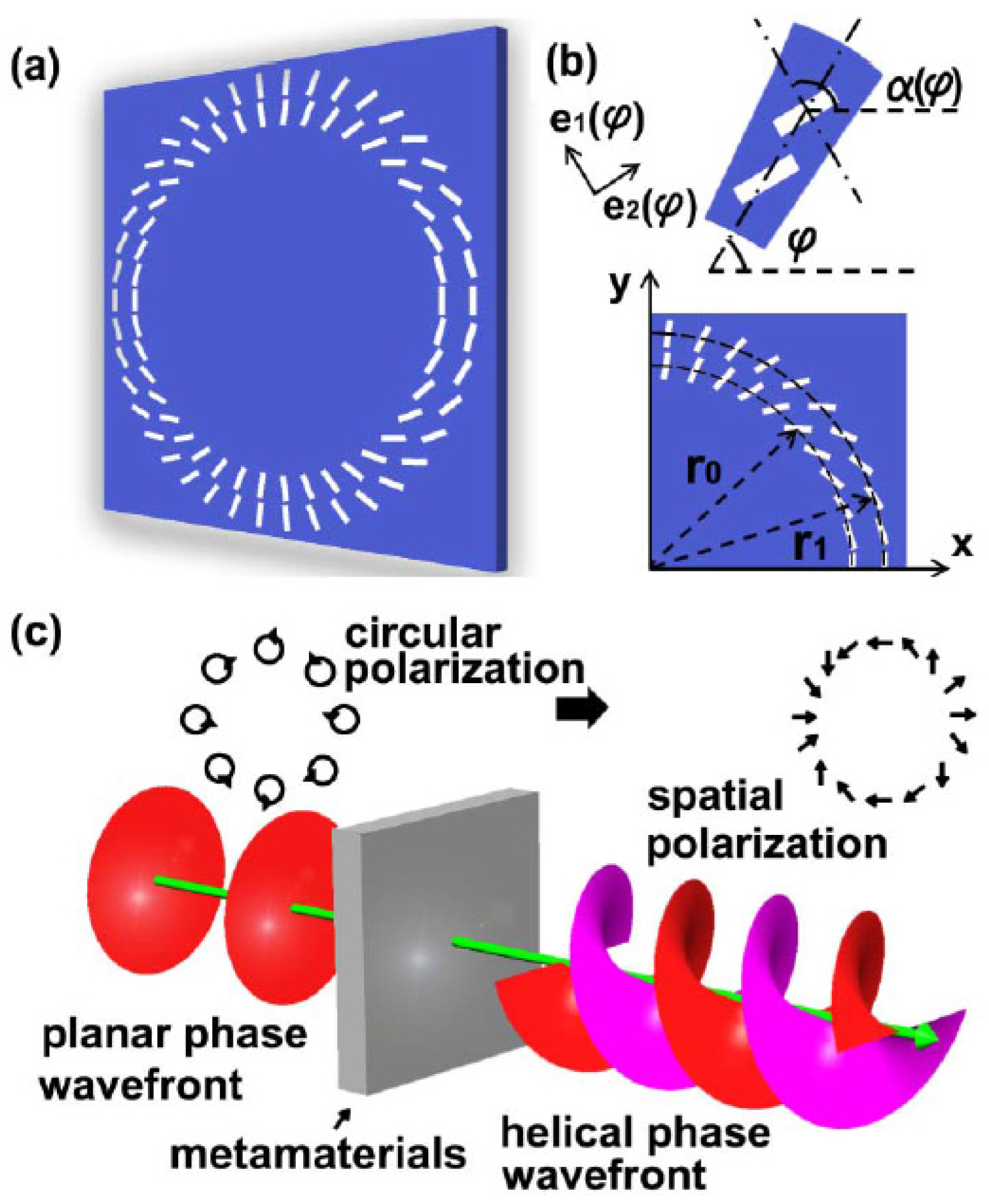 - Kang, M.; Chen, J.; Wang, X.-L.; Wang, H.-T. Twisted vector field from an inhomogeneous and anisotropic metamaterial. J. Opt. Soc. Am. B 2012, 29, 572–576. [Google Scholar] [CrossRef]