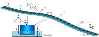 Fabrication: Figure 13b illustrates the fabrication process of the designed metasurface on the facet of G.652 SMF. First, a 5 nm-thick Cr layer and a 45 nm-thick Au layer are successively deposited on the facet of optical fiber utilizing the electron beam evaporation technique. Then, this is followed by focused ion beam (FIB) etching to shape the appearance of the metasurface.