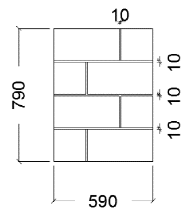 Figure 14. The size of units are 390 × 220 × 195 mm and 195 × 220 × 195 mm with zero thickness of mortar.