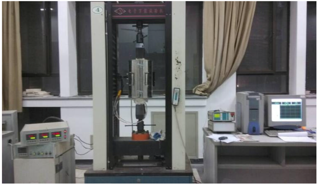The specimen was mounted into the loading machine by gripping the upper end of the specimen and relaxing the bottom end. Then, the furnace was heated to the pre-set temperature and held for 120 min at this constant temperature. Subsequently, the bottom end of the specimen was manually gripped, and a monotonic tension load was gradually applied to the specimen at a constant displacement rate of 0.025 mm/s until failure while maintaining the pre-set temperature.