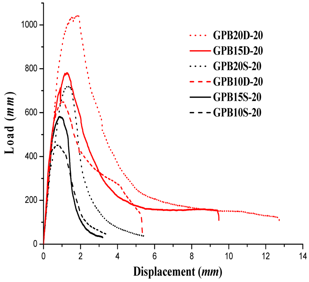 Typical load–displacement curve of (gypsum plasterboard) GPB20D-20.