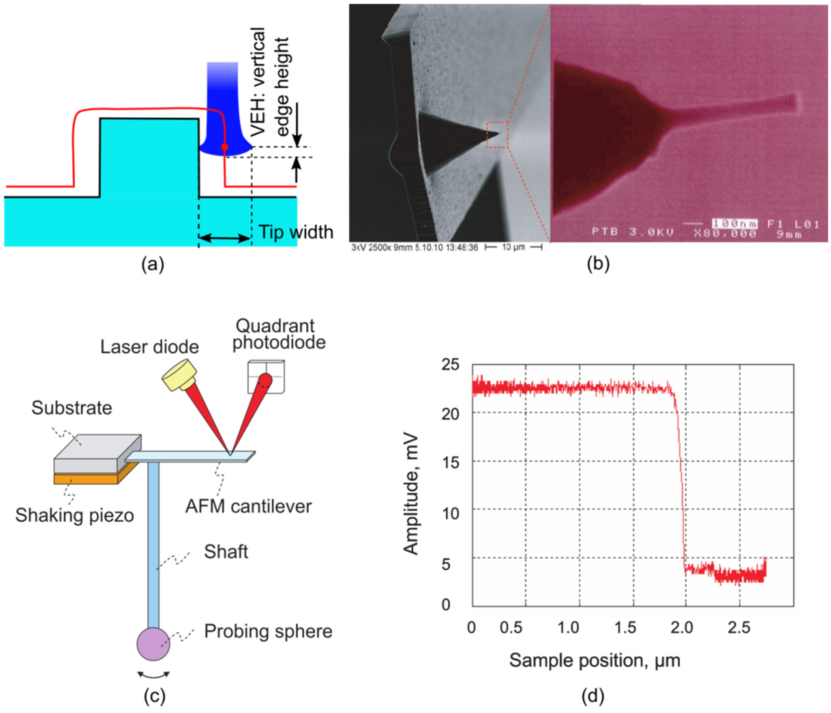 39. Dai, G.; Haeßler-Grohne, W.; Hueser, D.; Wolff, H.; Fluegge, J.; Bosse, H. New developments at Physikalisch-Technische Bundesanstalt in three-dimensional atomic force microscopy with tapping and torsion atomic force microscopy mode and vector approach probing strategy. J. Micro/Nanolithogr. MEMS MOEMS 2012, 11. [Google Scholar] [CrossRef]