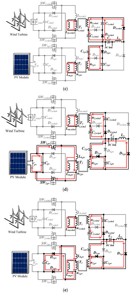 - In Figure 2, capacitances of C1,wind, C2,wind, C1,pv, and C2,pv are large enough so that all the voltages across them can be regarded as constant in a switching cycle.