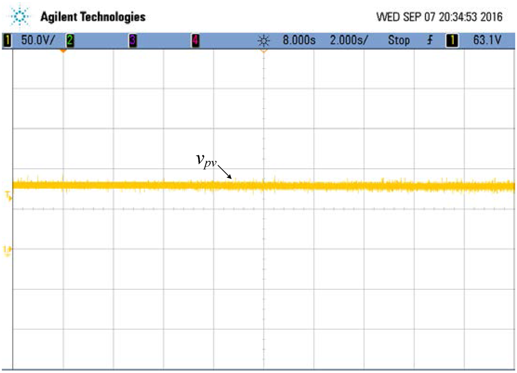 Output voltage of the PV module after MPPT and in steady state (vpv: 50 V/div, time: 2 s/div).