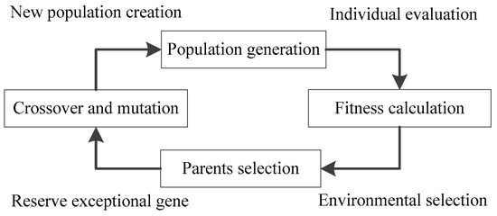 The genetic algorithm is a kind of optimal search mechanism to simulate natural reproduction, and its concept is to keep the most competitive species through environmental selection and conserve the best genes for the next generation. Its basic structure as shown in Figure 3. When the genetic algorithm is used to solve optimization, fitness function must be designed according to the applied problem, so as to effectively search for the best solution in the whole area.