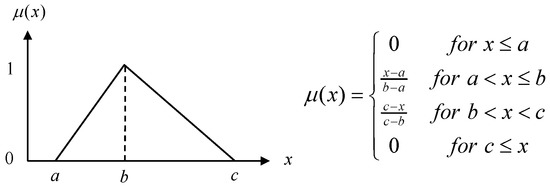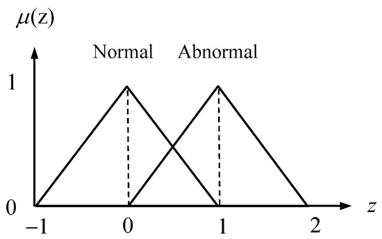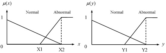 The fuzzy set is based on triangular membership functions of a normal set and an abnormal set. The input membership function has left-side characteristic frequency energy, and right-side characteristic frequency energy, both of which contain two variables, as shown in Figure 6 and Figure 7.
