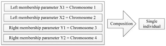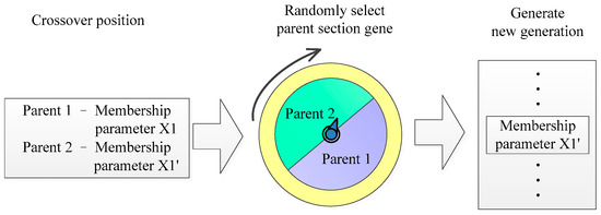 As shown in Figure 10, the parents, selected using roulette wheel, are mated in pairs, while the membership parameters of left-side characteristic frequency and right-side characteristic frequency will have crossover positions. In addition, appropriate mutation rates can change the structure of their offspring so as to improve the population diversity. The mutation mechanism used for this research is that it randomly selects mutation points from four input variables and regenerates membership parameters.