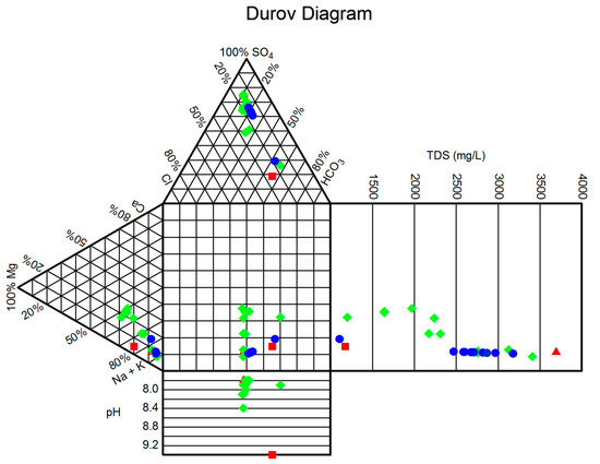 - Piper, A.M. A graphic procedure in the geochemical interpretation of water—analysis. Trans. Am. Geophys. Union 1944, 25, 914–928. [Google Scholar] [CrossRef]