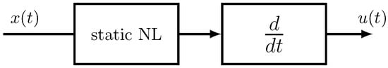 Probably the best known block-oriented nonlinear model is the Hammerstein model combining two elements in series: a static nonlinear system and a linear filter [,,]. This kind of model has been, up to today, applied to guitar pickups in [,]. The Hammerstein model is then often preferred because of its simpler structure and lower computational cost.