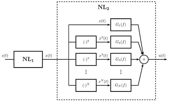 To overcome this problem, we use a technique presented in [] and detailed in the Appendix A. Thanks to this technique, a nonlinear system can be identified in terms of an N-th order Generalized Hammerstein model (Figure 2), even if it is preceded by another unknown nonlinear system.
