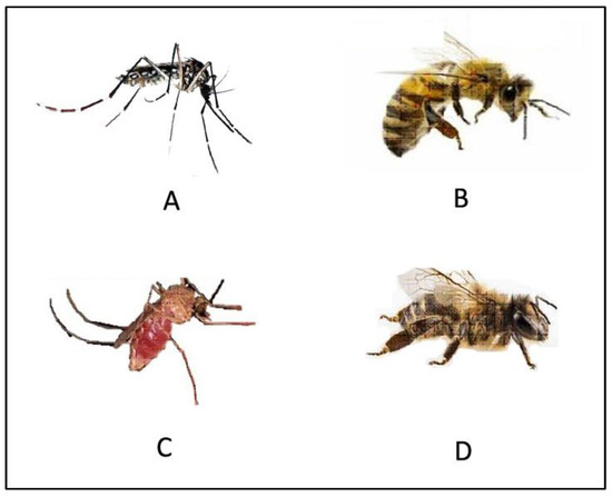- Jasinskiene, N.; Coates, C.J.; Benedict, M.Q.; Cornel, A.J.; Rafferty, C.S.; James, A.A.; Collins, F.H. Stable transformation of the yellow fever mosquito, Aedes aegypti, with the Hermes element from the housefly. Proc. Natl. Acad. Sci. USA 1998, 95, 3743–3747. [Google Scholar] [CrossRef] [PubMed]