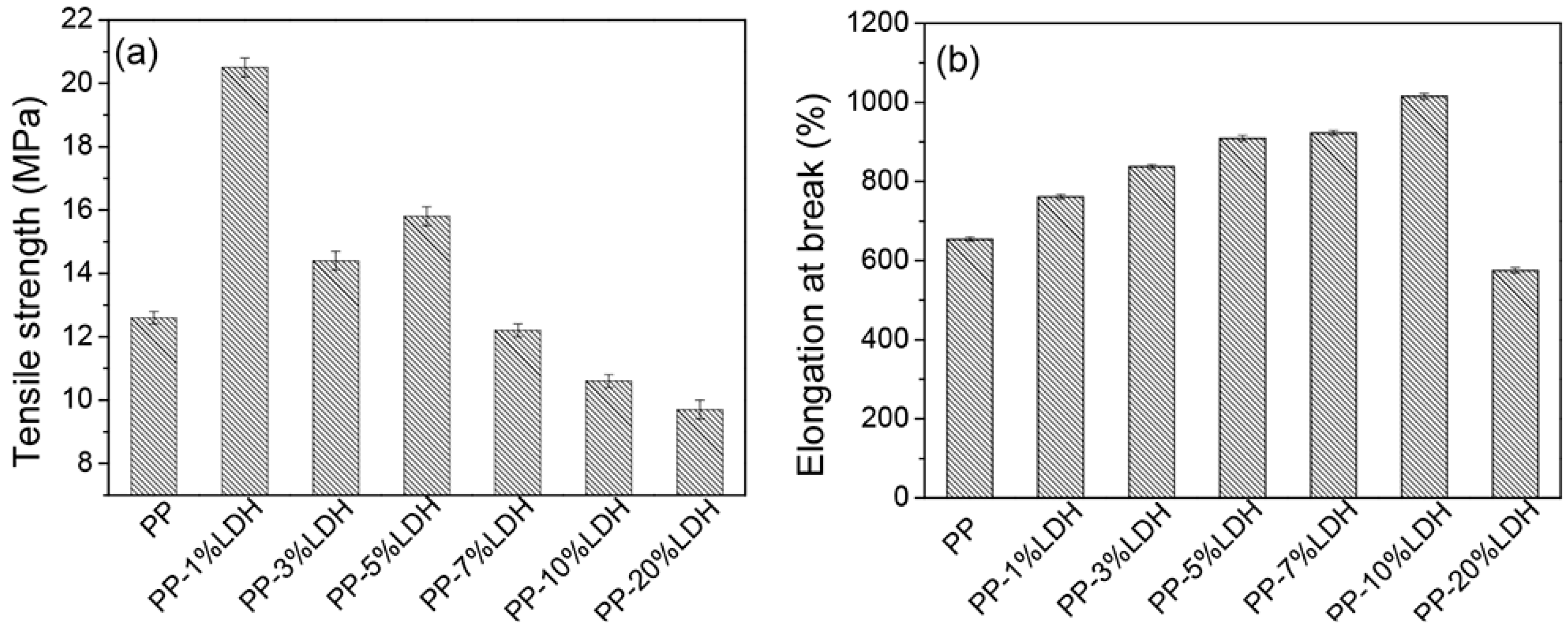 - Lonkar, S.P.; Therias, S.; Leroux, F.; Gardette, J.L.; Singh, R.P. Influence of reactive compatibilization on the structure and properties of PP/LDH nanocomposites. Polym. Int. 2011, 60, 1688–1696. [Google Scholar] [CrossRef]