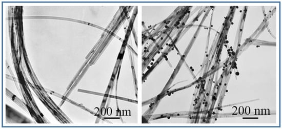 TEM micrographs of HAp nanowires with (right) and without (left) Ag nanoparticles prepared by one-step solvothermal method at 180 °C. Reproduced with permission from [84], John Wiley & Sons, Inc., 2016.