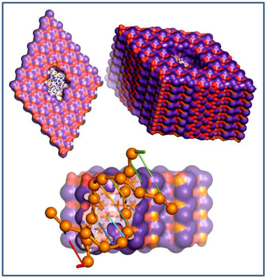 Molecular dynamic simulations have been performed in order to demonstrate the ability of the B double helix of DNA to be encapsulated inside HAp nanopores without causing a significant distortion in both the inter-strand hydrogen bonds and the intra-strand molecular stacking (Figure 10) [124].
