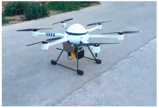 As shown in Figure 16 and Figure 17, the UAV is equipped with one D3160 type SAR. The UAV is a six-rotor UAV with mass being 20 kg and velocity range being 0 m/s–20 m/s. The D3160 type SAR is a kind of micro-SAR system and the parameters are as follows: mass: 4 kg, operating frequency band: X or Ku, detection range: 10 km, resolution: 0.3 m.