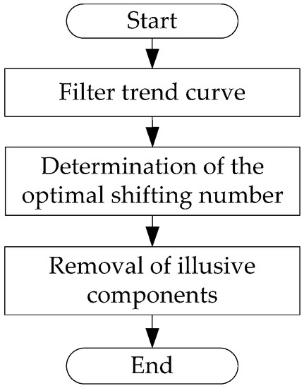 As illustrated in Figure 3, the trend curve embedded in a partial discharge signal detected on site is requested to be filtered out as the first step of EMD process in an attempt to upgrade the accuracy of HTT analysis. The resultant signal is then treated as an updated signal for the second run of the EMD process in determination of the optimal shifting number. The last step is the removal of illusive components.