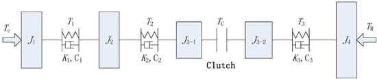 According to the simplifying work above, we can give the matrixes and vectors in the Equation (2) as follows: the stiffness matrix is ; the damping matrix is ; the inertia matrix is ; the angular displacement vector is ; and the torque vector is . The torque of the clutch in sliding status is calculated by Equation (4),