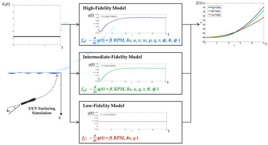 High-, intermediate-, and low-fidelity model design for the dynamic system: An example of a UUV surfacing simulation.