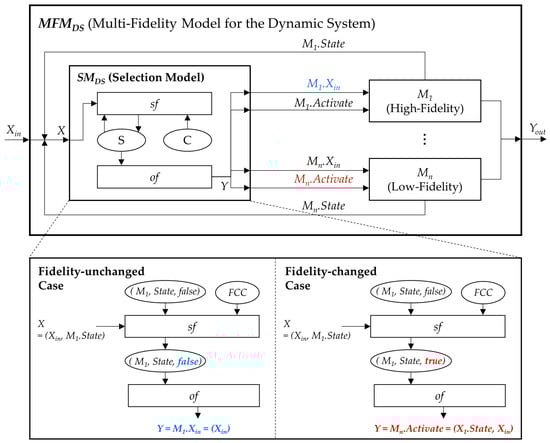 An example of the multi-fidelity model’s structure for a dynamic system: Fidelity-unchanged and fidelity-changed cases.