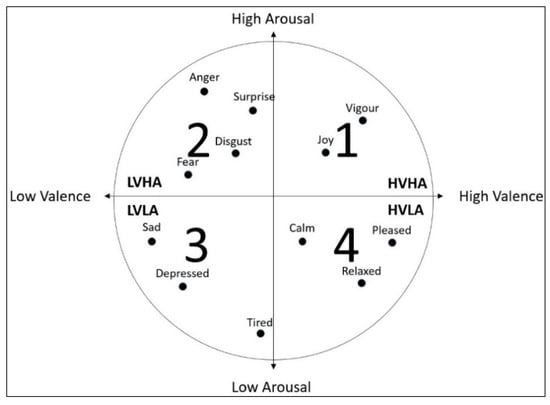 The Valence–Arousal dimension model of human emotion.