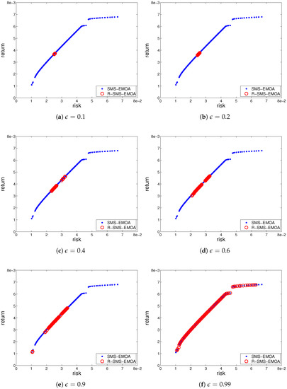 In the context of mean-variance portfolio optimization, the term of robustness can refer to different sources of uncertainty, such as the accuracy of future asset returns or the nature of the variance–covariance matrix [13,14]. The portfolio performance will not be optimal if incorrect parameter values are used. The risk due to parameter uncertainty is commonly referred to as estimation risk. Another source of uncertainty is portfolio implementation risk. With the latter, we make reference to the possibility of temporary deviations form a target allocation that could result in undesired exposure. The aim of this paper is to show how to limit this problem by means of a robustness-based S-metric evolutionary multiobjective optimisation algorithm [15] (SMS-EMOA).