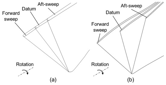 Sweep definition: (a) maintaining rest blade part and (b) maintaining relative blade angle and thickness distribution.