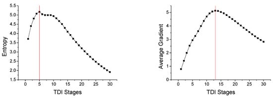 Figure 4 shows the changing trend of entropy and average gradient as the TDI stage increases from 1 to