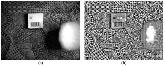 The experimental arrangement is shown in Figure 2. The scene includes a simulated cloud and simulated building with elevated bright roofs and dark shadows. The experiment setup can simulate the typical remote sensing scene with high contrast. By adjusting the luminance of the light source and the environment, we can set different conditions of contrast to check the efficiency of the algorithms.