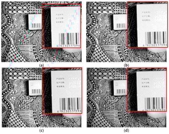 In order to verify the effectiveness of the image fusion method based on gradient pyramid decomposition and entropy weighting, the 5-stage and 13-stage images enhanced by EMAHE are used as source images, and perform the comparison experiment, as shown in Figure 13. Their entropy and average gradient are figured out as follows: (a) Entropy = 5.46, average gradient = 7.04; (b) Entropy = 5.42, average gradient = 7.55; (c) Entropy = 5.47, average gradient = 7.23; and, (d) Entropy = 5.49, average gradient = 8.45.