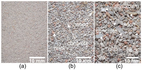 Construction and demolition waste (CDW) granulometry (a) fine; (b) medium; and (c) coarse.