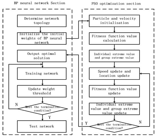 PSO (particle swarm optimization) optimization and BP neural network flowchart.